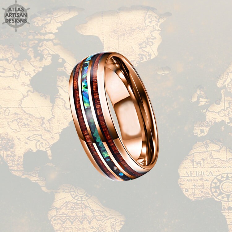 Rose gold tungsten wood ring opal wood ring wooden ring for men wooden wedding ring wood wedding band shell hawaiian koa. 14K Rose Gold. Rose gold opal bands.