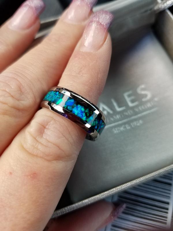 Men S 8 0mm Simulated Blue Opal Wedding Band In Stainless Steel Zales